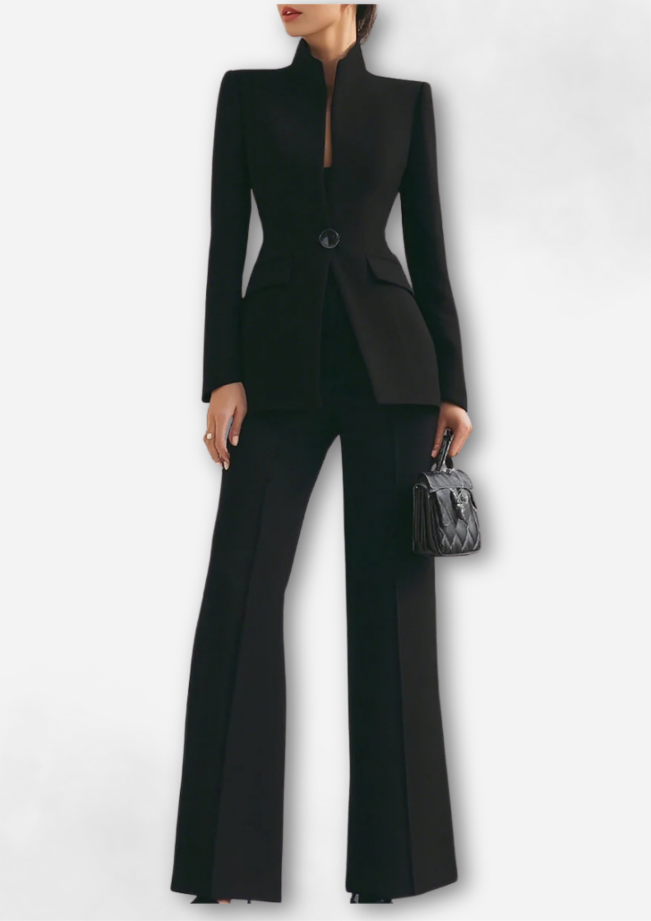 El traje Adriana encarna una sofisticada confianza: un blazer bellamente estructurado y pantalones a juego que crean una silueta de fuerza y gracia. Diseñado para halagar cada curva, este traje transita sin esfuerzo de las reuniones en la sala de juntas a eventos nocturnos, ofreciendo comodidad y elegancia por igual.